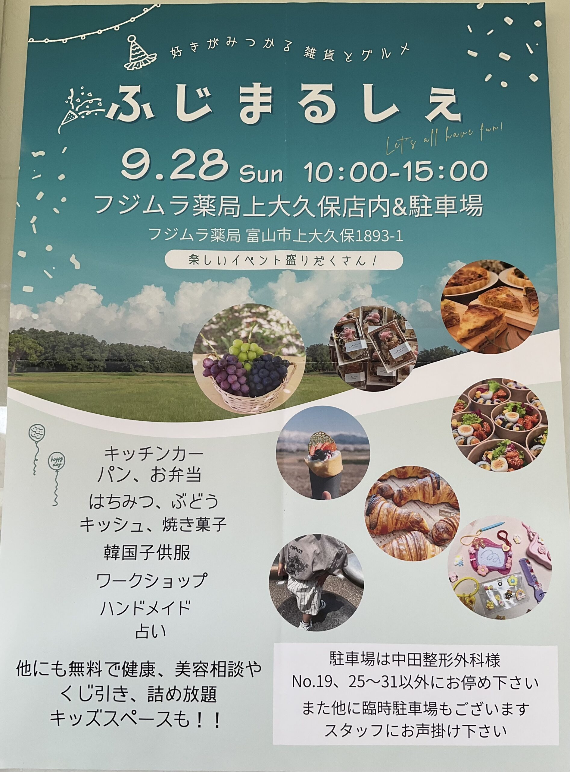 by: irismotooPosted on: 2025年9月23日 ふじまるしぇ 28日(日)富山県富山市上大久保で開催される ”ふじまるしぇ“に行ってきます フジムラ薬局さま、お世話になります! お近くにお住まいの方、富山に行く予定の方 是非お立ち寄り下さいませ〜