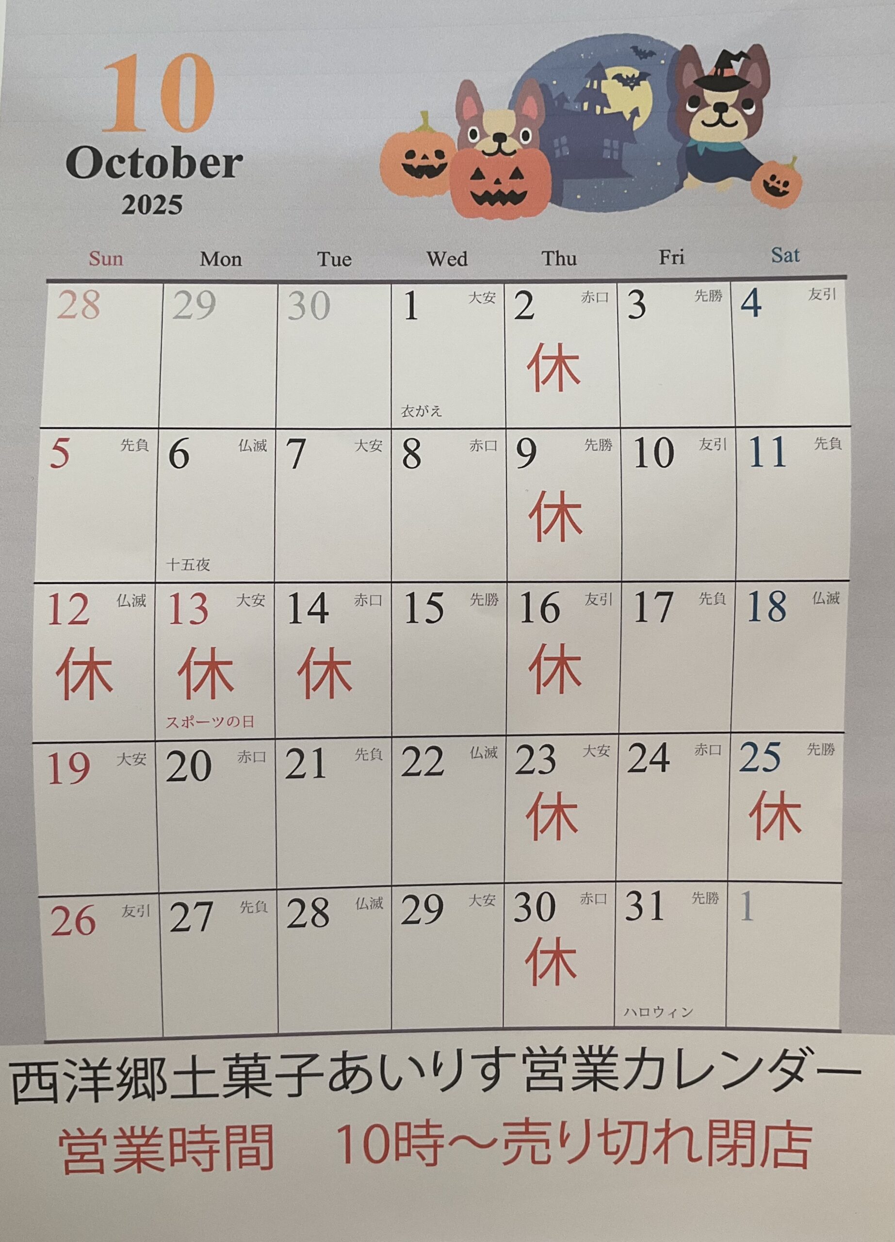10月のお休み
